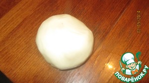 Я долго не вымешивала и больше ничего не подсыпала на стол, т. к. при этом кол-ве было уже понятно, что мастика хорошо раскатается. Кусочек получился не большой, но этого вполне достаточно обтянуть не большой торт.