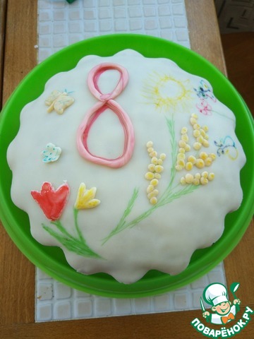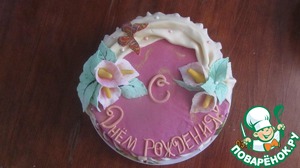 Когда я сделала первую мастику (розовую) я не думала, что у меня что-то выйдет, а когда нужна была вторая, записала рецептик. Все делала на глазок. Мастика достаточно тонко раскатывается. Идеально (1 складка получилась) ложится на тортик, не порвалась Вот что из этого получилось.