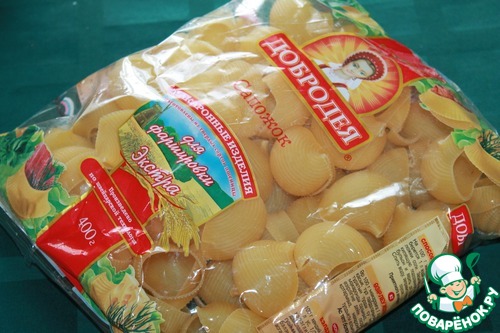 - Макаронные изделия / Макароны (У меня это сапожки, но есть и ракушки. Можно использовать даже канелони.) — 400 г