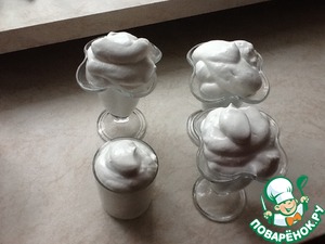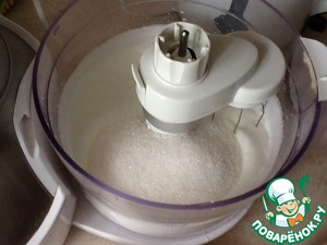 • Затем добавить не полный стакан сахара и опять взбивать миксером пока это все не превратится в густой крем.
