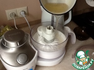 • Влить в белковую массу желатин. Еще раз тщательно перемешать.