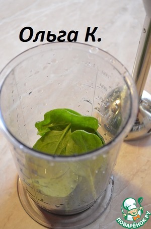 1. Шпинат измельчить при помощи погружного блендера, я сразу к шпинату добавила 180 мл воды.
