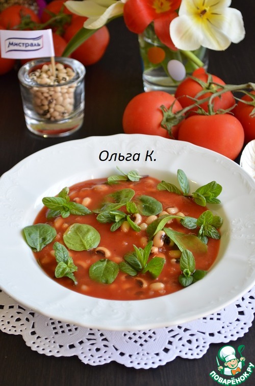 Рецепт «Холодный томатно-фасолевый суп со шпинатом и мятой»: