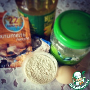 1 шт. яйцо, 2 ст. л. сахара, 1 ст. л. ванильного сахара, 1 ч. л. разрыхлителя -