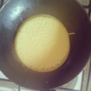 Выливаем тесто и ждем появление пузыриков. Когда появились, можно переворачивать.
