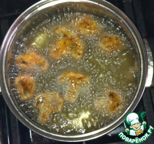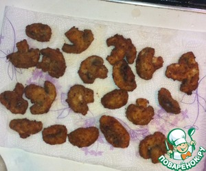 Достаем грибы, обжариваем во фритюре буквально пару минут.