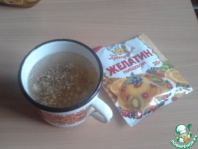 Растворяем желатин в холодной воде, ждем 40 мин, затем нагреваем до полного растворения, не доводя ло кипения. Если бы не ожидание, то приготовление заняло бы минут 15