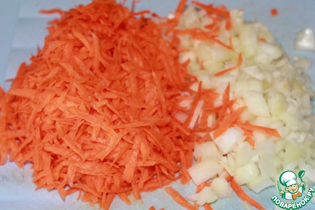 На сковороде с добавлением небольшого количества растительного масла обжарьте лук и морковь. В процессе добавьте сливочное масло.