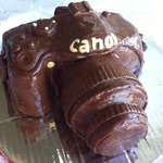 Торт снова отправился в холодильник, а мы вырезаем нужные детали. Из белой мастики я вырезала Canon, так как у Виталия фотоаппарат этой фирмы. Но, честно признаюсь, что все кнопочки делала, копируя свой Nikon. Он меня простил за небольшое несоответствие))