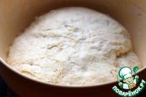 Выложить в миску и поставить на 40 минут в теплое место (или пока не увеличится в два раза)