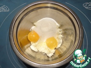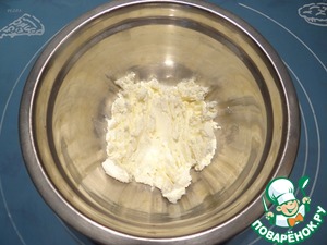 Готовлю тесто. Разминаю вилкой сливочный творожный сыр комнатной температуры.