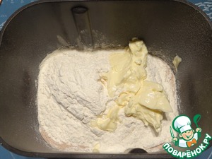 Добавляю просеянную муку, размягченное сливочное масло.