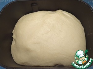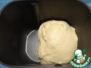 Помещаю ведерко в хлебопечку, включаю режим замеса теста.