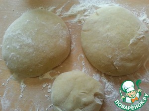 Формируем 3 шара. Раскатываем 2 больших коржа, один маленький. Маленький раскрошим в начинку.