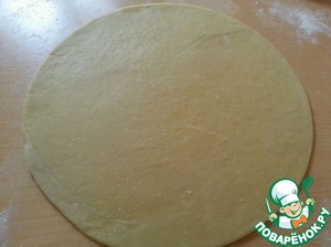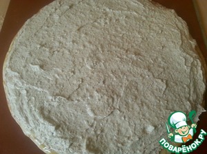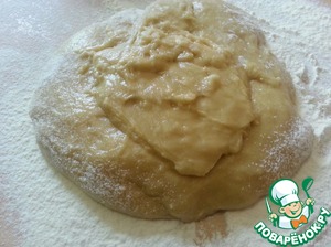 На посыпанную мукой рабочую поверхность выкладываем тесто.