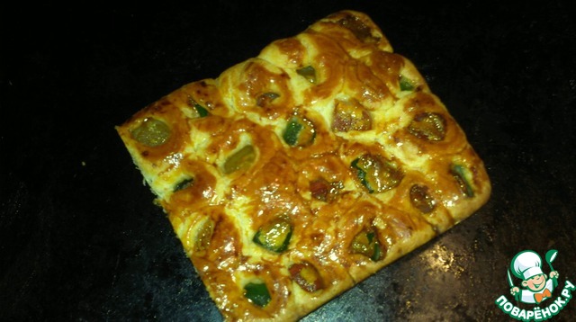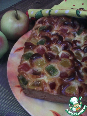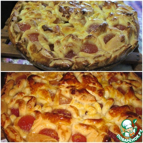Смазываем пирог взбитым яйцом и ставим в духовку при температуре 180 градусов примерно на 30-40 минут (ориентируйтесь на свою духовку, моему хватило 30 минут и бочок даже излишне зарумянился)