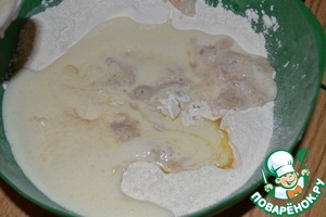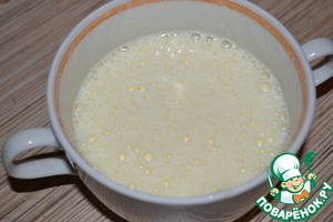 В 50 гр теплого молока развести дрожжи и оставить на 15 минут