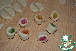 Заворачиваем кусочек мармелада в половинку кружка как в кулечек