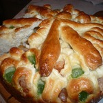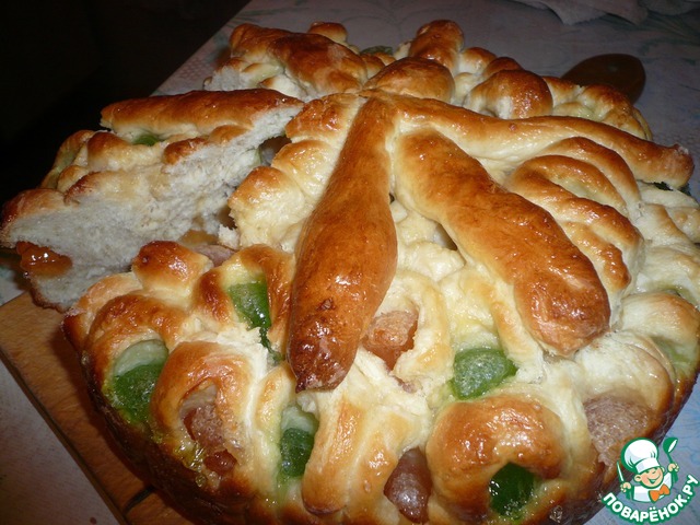 Раньше,в моей молодости,такой пирог назывался"Студенческий" и заправляли его,в основном, творогом.... Но и колбаса была ... ливерная-тоже ПРЕКРАСНО получалось,особенно-когда с лучком пережарить !