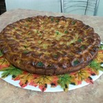Предлагаю вашему вниманию такой нарядный пирог. Пересмотрела кучу страниц, но такого не нашла.