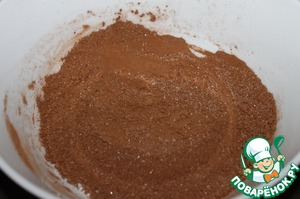 Смешать сахар и какао.