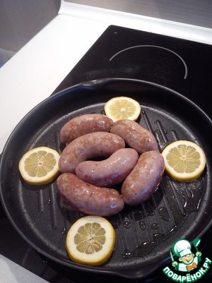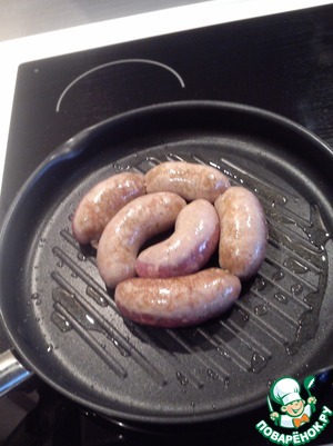 Сковороду разогреть с небольшим количеством масла, разжарить колбаски.