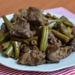 Рецепт был найден на просторах Интернета. Готовится мясо очень быстро, получается очень ароматным, с приятной горчинкой. Стручковая фасоль очень хорошо сочетается с говядиной.