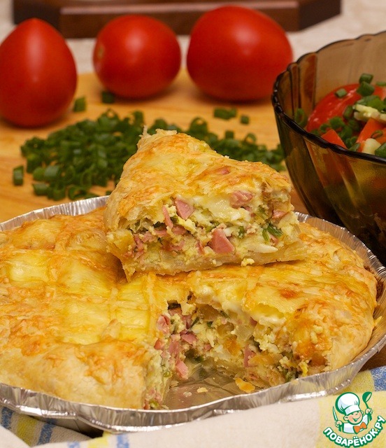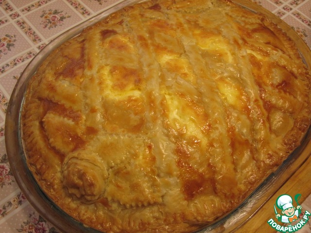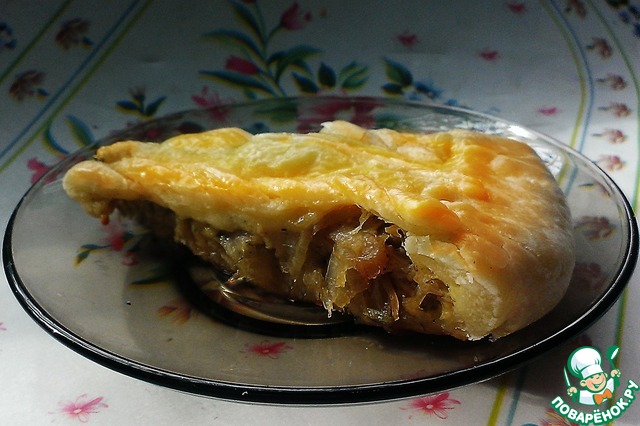 Очень ароматный пирог с хрустящей корочкой из слоеного теста и нежной, мягкой начинкой из жаренного лука под сырно-сметанным "одеялом". Очень вкусно! Заходите и угощайтесь!
