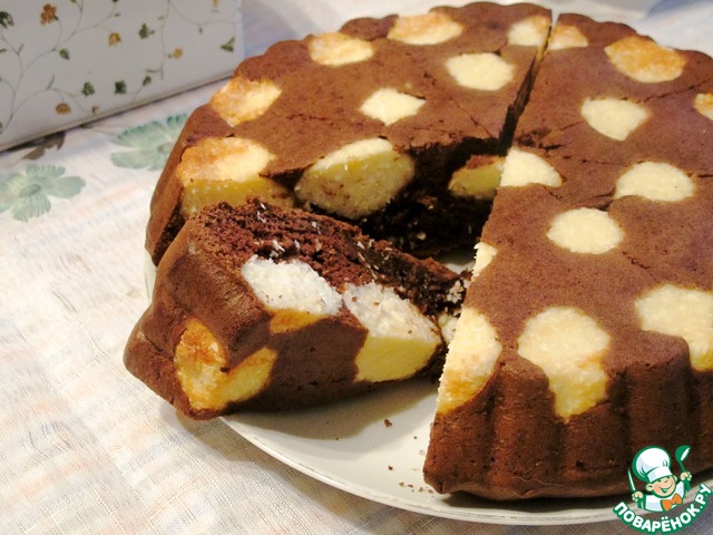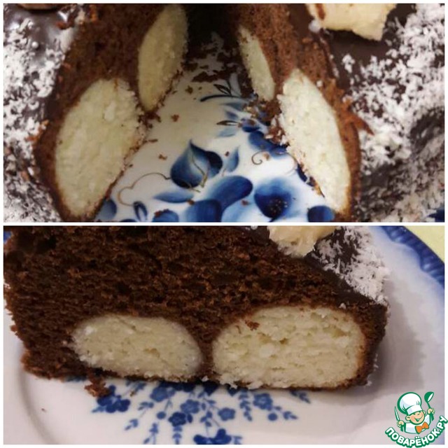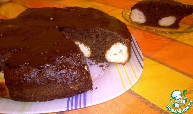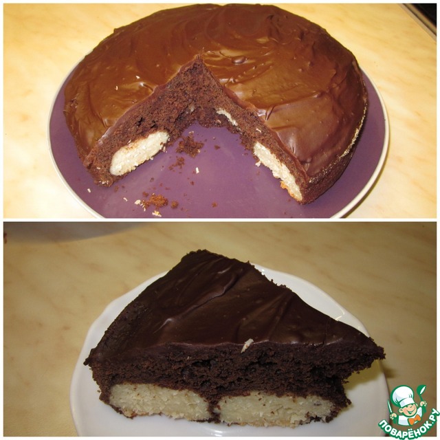 Очень нежный, очень шоколадный, вкусный пирог с вкраплением творожно-кокосовых шариков.