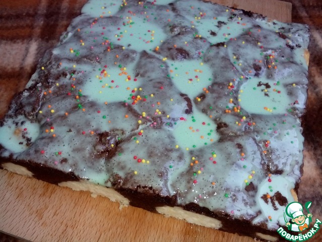 Смажем остывший пирог глазурью.