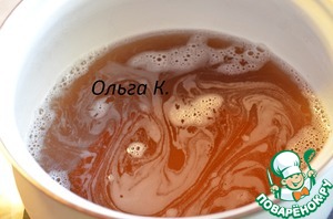 Сироп от груш уварить (10 минут), у меня получилось 1.5 стакана жидкости. Остудить. Тот желатин, который остался у Вас в стакане, если он застыл, то еще раз нагреть и влить в грушево-медово-коричный сироп (очень ароматно). Сразу сироп не вливайте, полностью остудите его, пусть он начнет загустевать, тогда и вылить его поверх творожной массы.