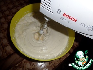 Делаю крем. Йогурт взбила с сахаром (т. к. он не очень сладкий был, а вообще тут на ваш вкус). Затем отдельно взбиваю сливки не до конца. Добавлю йогурт в сливки и взбиваю до готовности. Получается довольно густой крем.