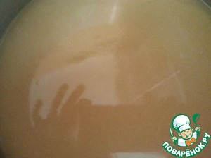 В муку понемногу вводим 200 мл остывшего бульона. Варим, мешая, чтобы комков не было.