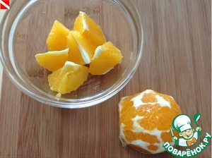 Так вот, берем наш многострадальный апельсин (без цедры) + еще половинку, срезаем с него оставшийся белый слой кожуры, очищаем от косточек -