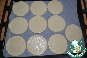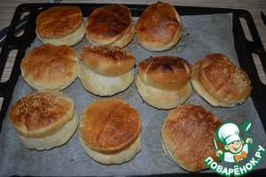Выкладываем кружки на противень и смазываем молоком или желтком. Половину кружков, которые станут верхушками чизбургеров, посыпаем тмином или кунжутом – как вам по душе.