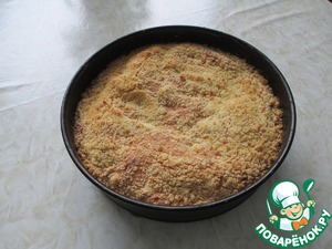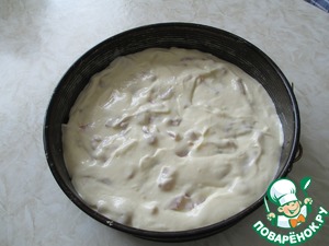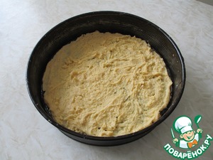 И выкладываем его на дно смазанной маслом формы, равномерно распределяя по донышку.