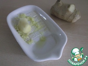 Кусочек свежего корня имбиря чистим и натираем. Нам нужна 1 ч. л. готового имбиря.