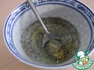 В отдельной посуде смешиваем уксус, растительное масло, мёд, тимьян, соль. Всё перемешиваем. -