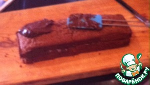 Разрезаем остывший корж на две части, прослаиваем помадкой и ей же обмазываем снаружи.