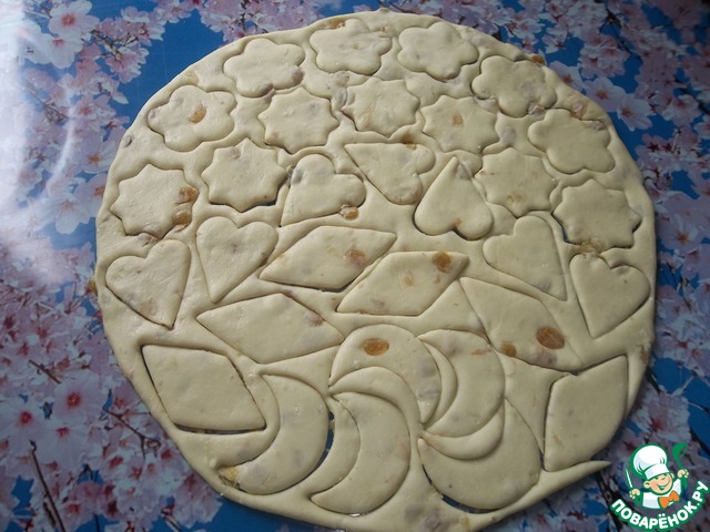 Вырезаем при помощи формочек фигурки. Можно просто стаканом.