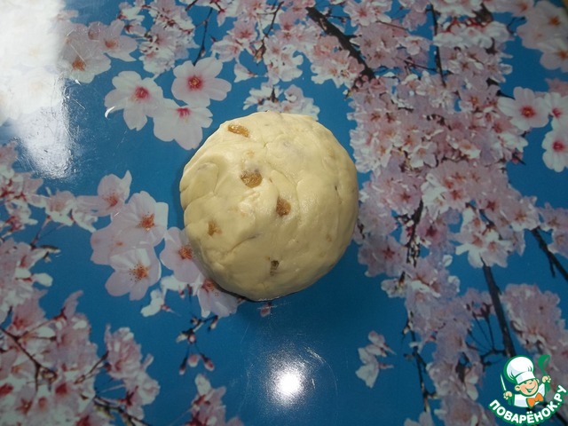 Замешиваем тесто. Оно должно получится мягким и не липнуть к рукам. Скатываем в шар и в холодильник минут на 30.