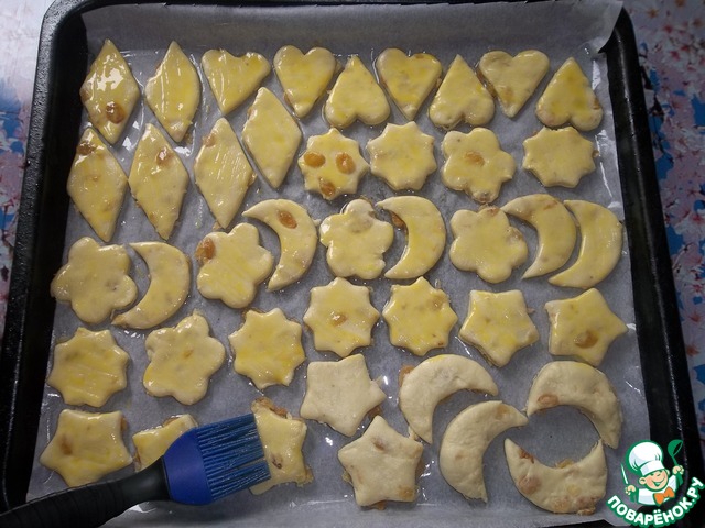 Смазываем желтком. И ставим в разогретую духовку до 170* на 15-20 минут.
