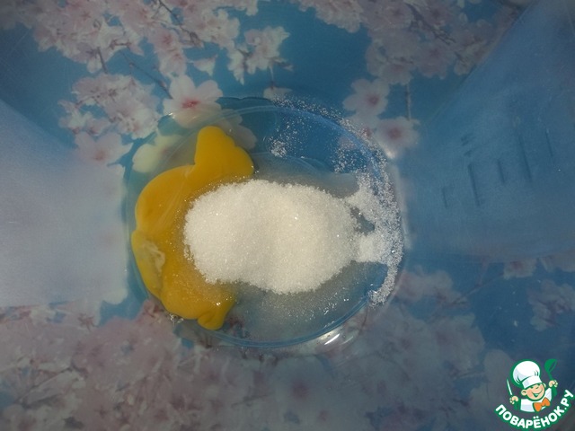 Смешать одно яйцо с сахаром, ванилином и содой.