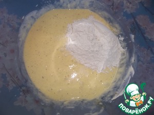 К этой смеси добавляем муку и перемешиваем.