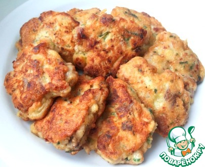 Затем берём столовой ложкой и выкладываем на разогретую с маслом сковороду, формируя котлетки.