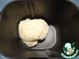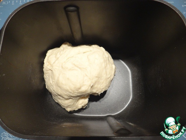 Помещаю ведерко в хлебопечку, включаю режим замеса теста (или режим замеса теста с расстойкой).