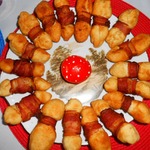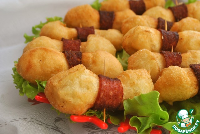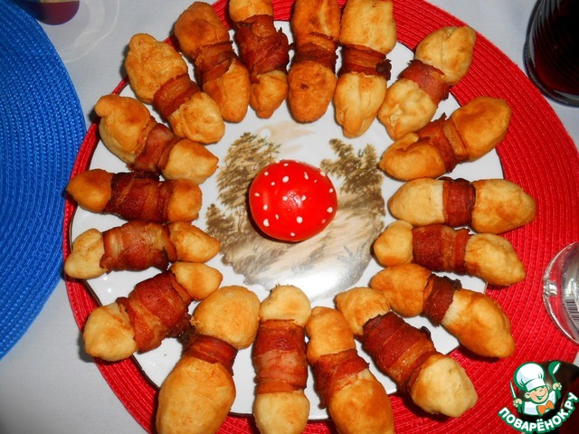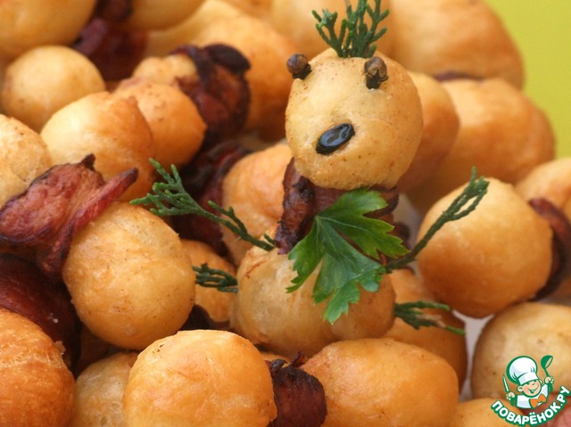 Предлагаю приготовить закуску, которую я повстречала на иностранном кулинарном сайте (рецепт я чуть изменила), из теста с беконом и сыром. По внешнему виду эта закуска напомнила нам муравьев, а оригинальное название рецепта в переводе звучит "Бомбы малого калибра с беконом". За рецепт благодарю автора Лану Снеговик. Закуска нам очень понравилась.