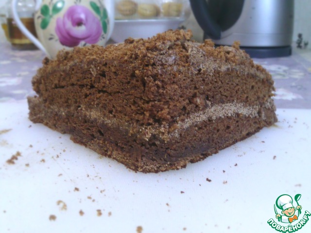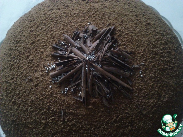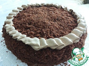 Обсыпать готовый торт крошкой. Накрыть целлофаном и на ночь поставить в холодильник, чтобы он пропитался.