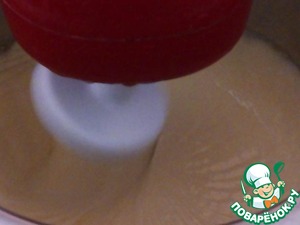 Пока бисквит выпекается и остывает, приготовим крем. Хорошо взбить вареную сгущенку с маслом.