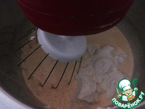 Продолжая взбивать, по очереди добавляем сгущенное молоко,